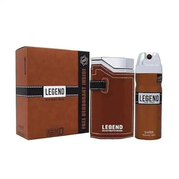 ادکلن مردانه لجند قهوه‌ای همراه با اسپری از برند امپر